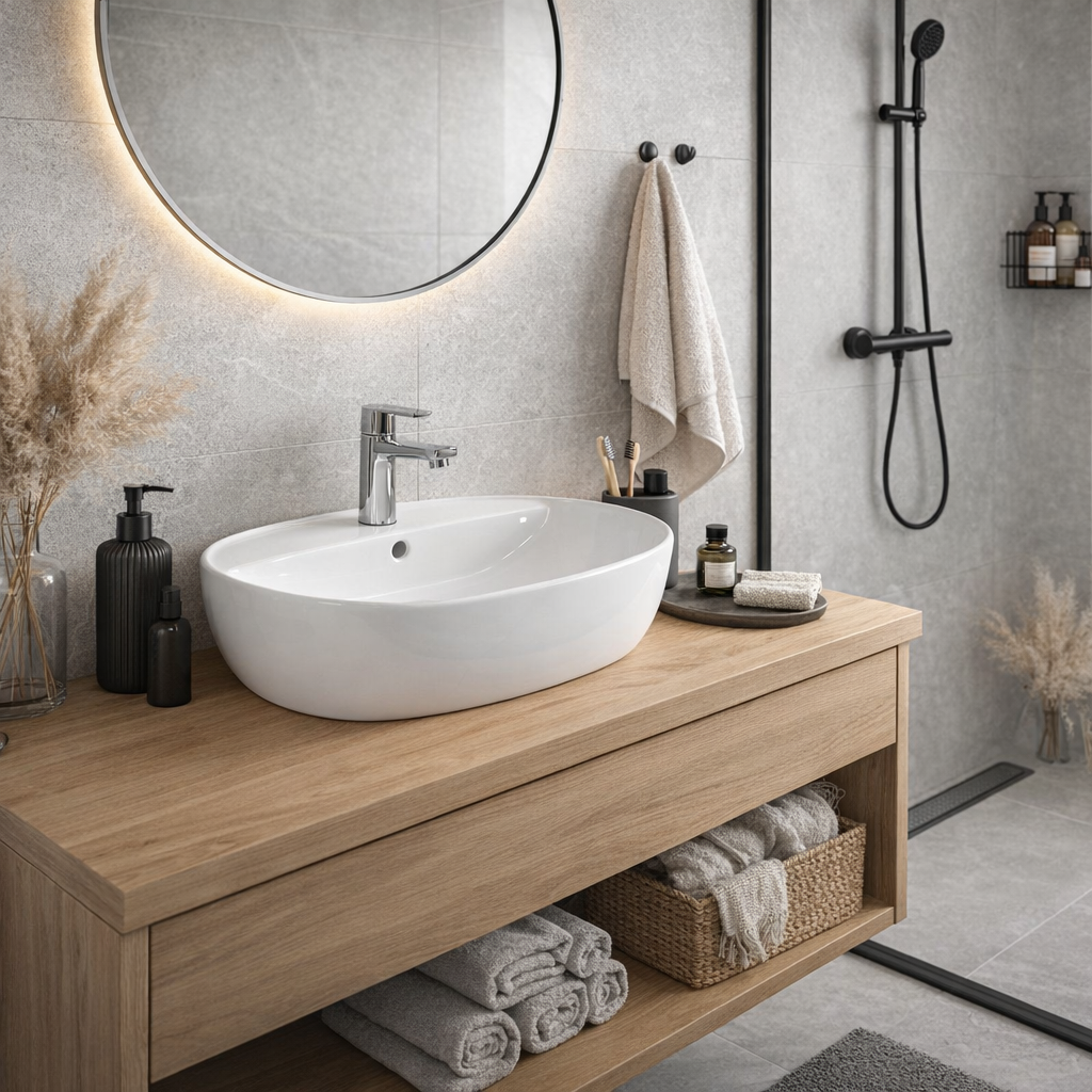 To ponadczasowy wybór, który rozjaśni i optycznie powiększy przestrzeń łazienki.
